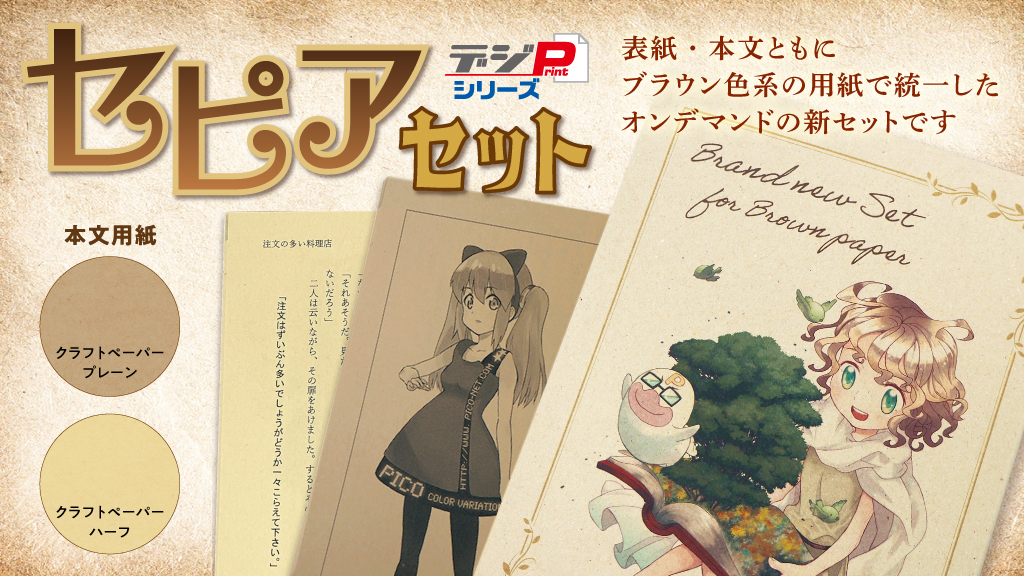 PICOの30部から対応のシンプルセット。表紙も4種類の用紙から選べます。大人気の「スノーフィールド165kg」もコチラから!