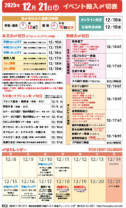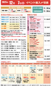 ※土曜日に開催されるイベントにつきましては、下記〆切表より1日前倒しとなりますのでご注意ください。(直接搬入の場合に限ります)