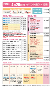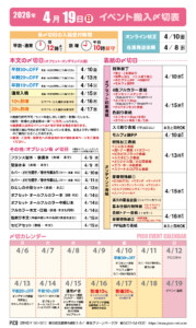 東京・大阪のイベント会場(ビッグサイト・TRC・Pio・都産台東館・都産浜松町館・綿商会館・文具共和会館・サンシャインシティ・インテックス大阪)にて開催されるイベントへ【直接搬入】する事を想定とした締切表となっております。