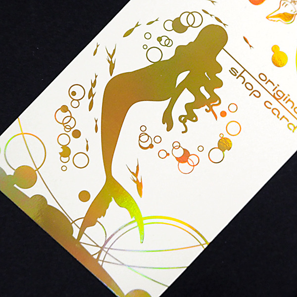 名刺やショップカードに、アピール強めの全面箔プリントカード。