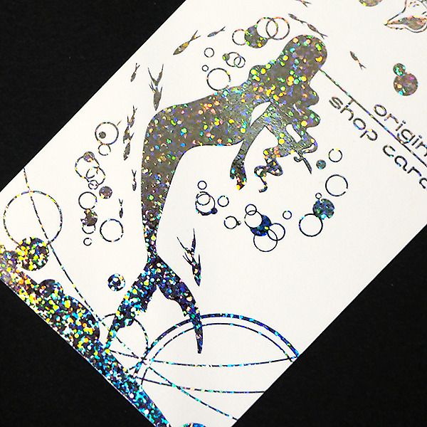 通常の箔よりも光の反射が派手なので、より目立つ加工になります。