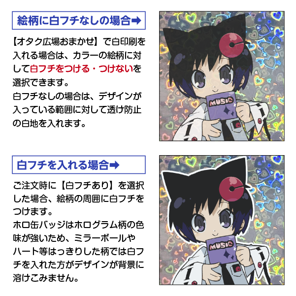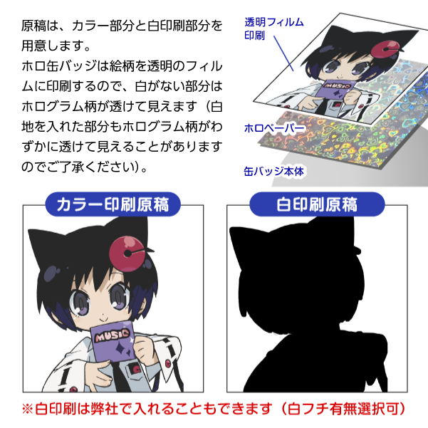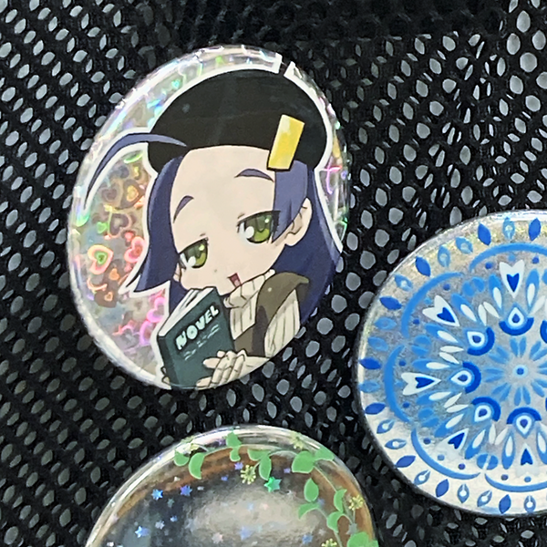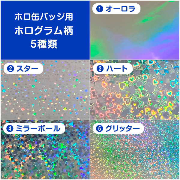 印刷面がぐぐっと派手になる、ホログラム敷きのクリアフィルム印刷の缶バッジです!