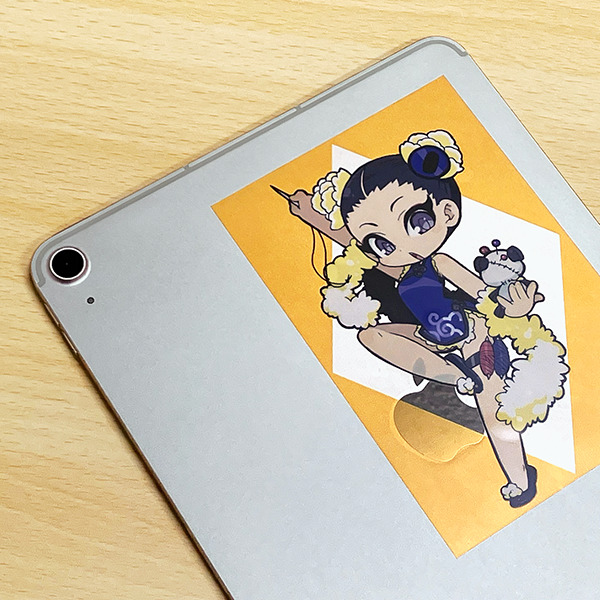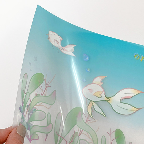 透明のポリ系素材に、フルカラー+白で印刷します。