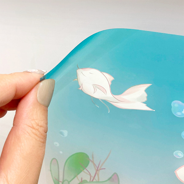 静電気のチカラでスーッと貼り付くので、いままでの糊着きシートのような難しさはなく、剥がした跡もつきません
