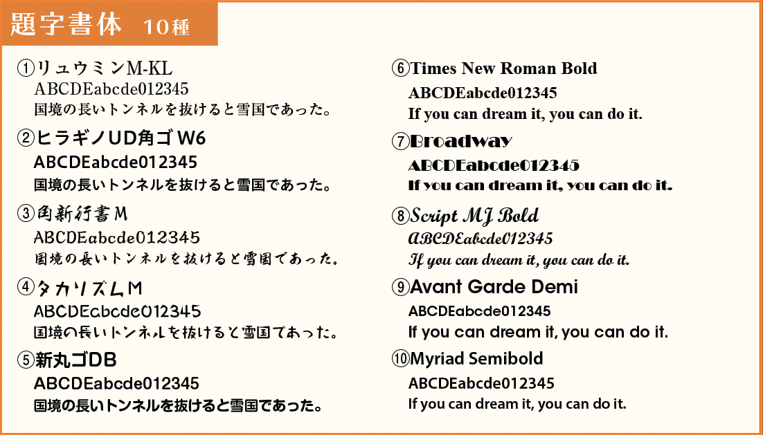また60P以上の冊子には、同様のフォントで背にもタイトルが入ります。