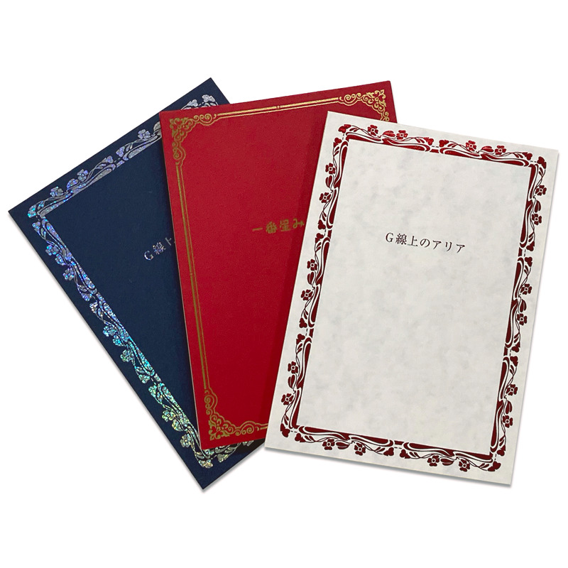 「黒箔」ならびに「白箔」は、表紙用紙が「アートポスト 180kg」または「色上質最厚口黒」のみとなります。